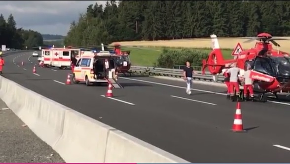 Accidentul a avut loc in apropiere de Münchberg, intr-o zona forestiera muntoasa, la limita intre landurile Bavaria si Turingia, nu departe de frontiera ceha, blocand autostrada A9 in ambele sensuri.