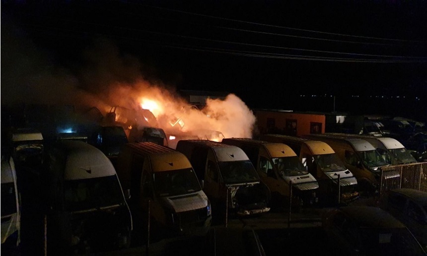 27 de autoturisme au ars într-un un parc auto la Buzău. Dezastrul a avut loc noaptea trecută.