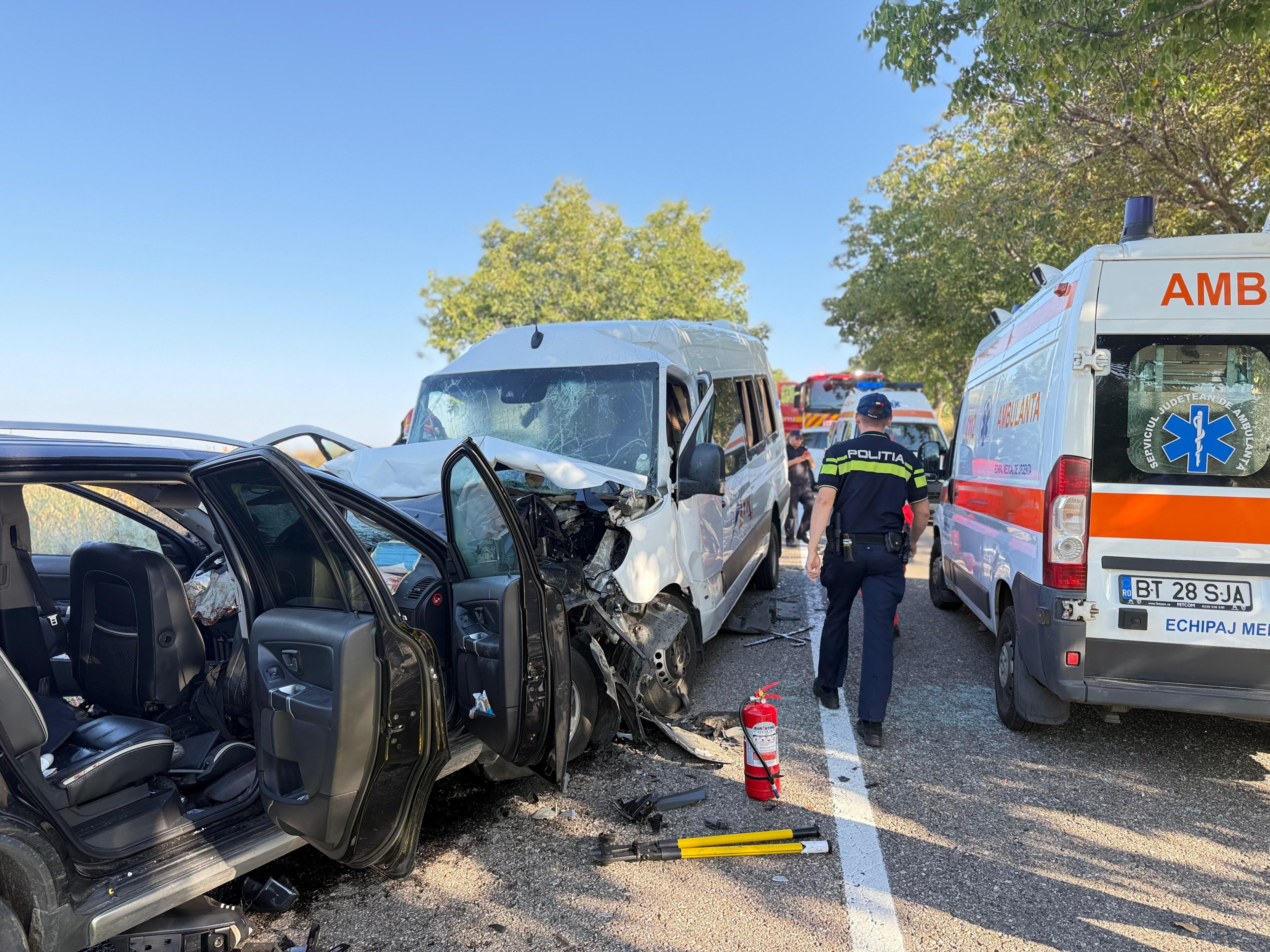 Accidentul rutier în care au fost implicate un microbuz și un autoturism a avut loc pe DN 24 C, între localităţile Româneşti şi Dămideni.
