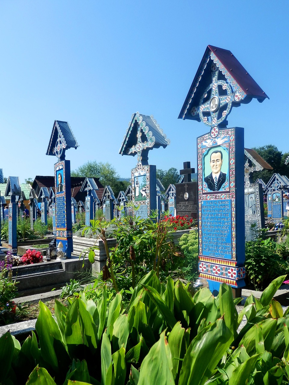 Un monument unic în lume, Cimitirul Vesel din Săpânța iese din tiparele clasice ale locurilor de veci prin crucile viu colorate și inscripțiile umoristice care povestesc viața celor decedați.