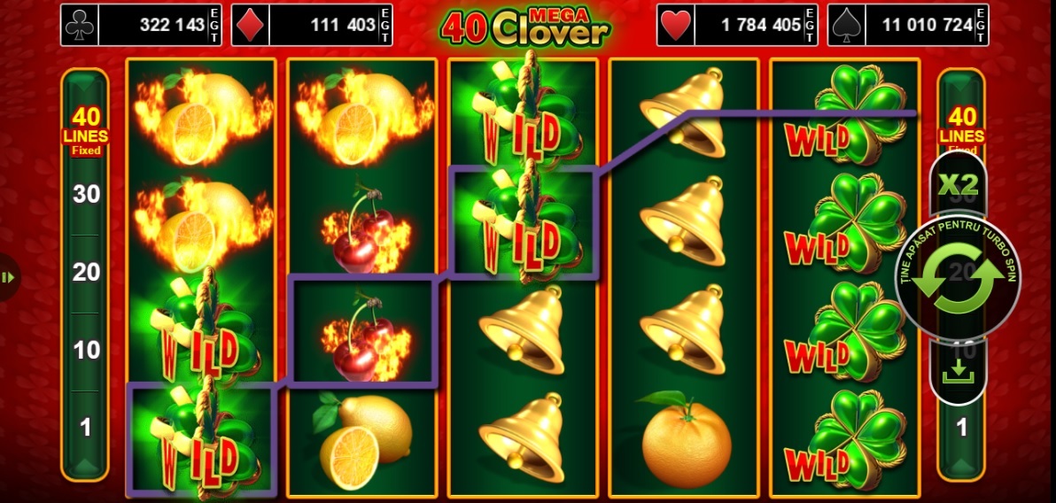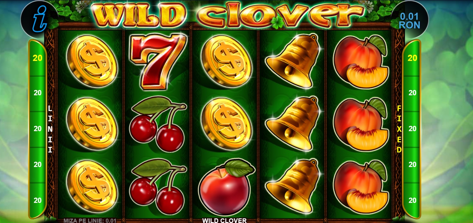 Titlul este ca un joc de cuvinte. Wild Clover se poate referi la trifoiul sălbatic, pe care îl găsești pe marginea drumului, dar și la simbolul Wild din acest slot. Grila este structurată pe 5 role și 3 rânduri, pe care se formează 20 de linii de plată. Cel mai mare câștig este obținut dacă pe toate pozițiile se opresc șeptari.