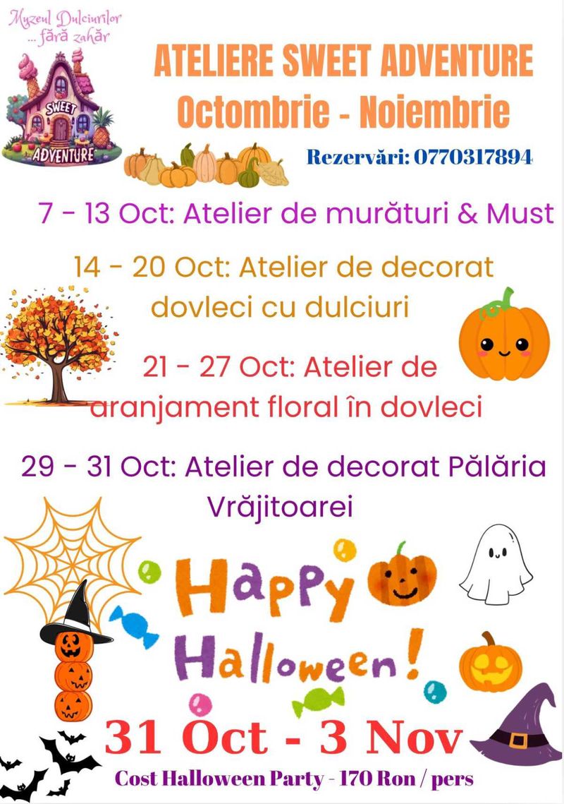 Nu doar Ziua Internațională a Educației poate fi petrecută la Sweet Adventure, reprezentanții Muzeului Dulciurilor fără zahăr au programate ateliere până la sfârșitul anului. Iată programul atelierelor pentru octombrie, noiembrie și decembrie 2024: