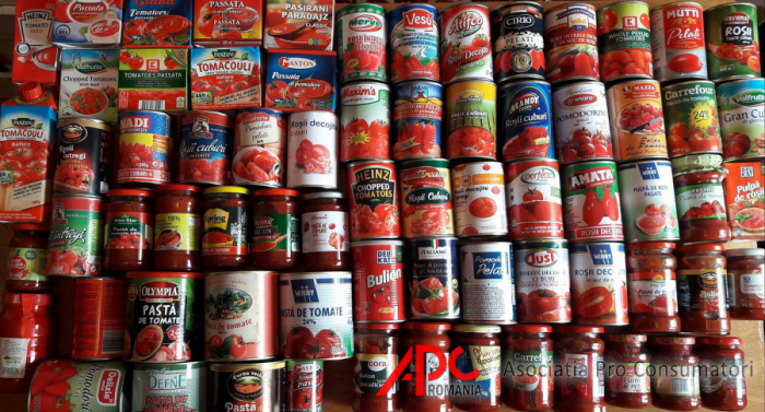 Asociatia Pro Consumatori (APC) a achizitionat, in ultima decada a lunii ianuarie 2017, 71 sortimente de tomate in conserva (bulion, pasta de tomate, rosii pasate, tomate decojite, rosii taiate cuburi) comercializate in cadrul marilor structuri comerciale de tip hipermarket.