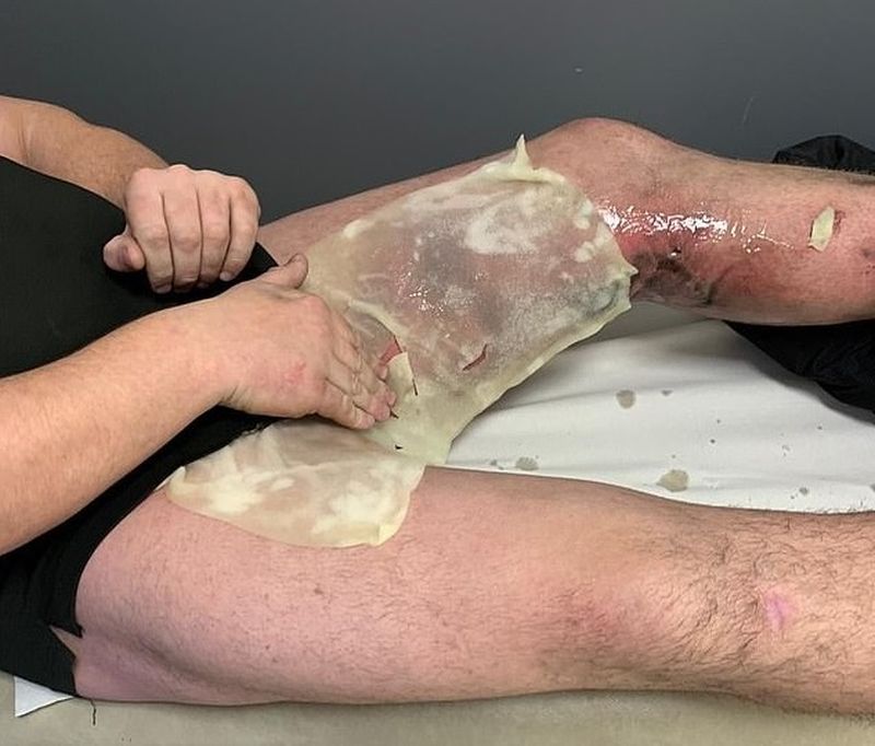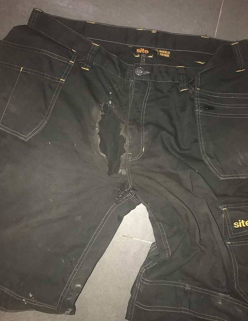 Colegii lui Darren, care l-au ajutat să-şi renoveze casa, au sărit imediat când l-au văzut ţipând de durere, cu fumul care-i plutea din pantaloni.