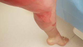 "Purtam pantalonii de lucru şi încercam să-i scot afară, dar m-a ars între picioare."