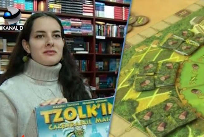 Corina Buhus, librar: Dupa cum va puteti da seama este vorba despre calendarul Aztec. Se joaca cu alti prieteni, doua, patru persoane si trebuie sa fim mai mari de 13 ani ca sa intelegem despre ce este vorba. Fiind o civilizatie mai straveche e vorba despre puteri ale zeilor, despre planete, aliniament, cum si unde putem construi, astfel incat sa ne putem ajuta de puterile ceresti.