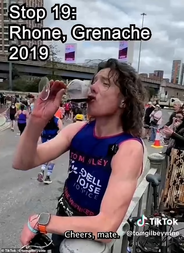 Tom a postat imagini de la maraton pe TikTok sub numele de utilizator @tomgilbeywine într-un videoclip care a acumulat acum peste 2,4 milioane de vizualizări, potrivit Daily Mail