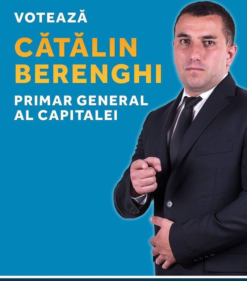 Catalin Berenghi a devenit cunoscut in vara lui 2015, cand a protestat impotriva intentiei Guvernului de a ridica o moschee in Bucuresti. Acesta s-a dus pe terenul unde urmeaza sa fie construit lacasul de cult si a facut o groapa unde a pus o carcasa de porc, cumparata de la supermarket, aducand si cativa porci vii, pe care i-a vopsit in culorile steagului Romaniei. Recent, Berenghi a candidat si la Primaria Bucurestiului, astfel ca si-a depus si declaratia de avere, care pare completata in gluma. Astfel, la rubrica “terenuri”, Berenghi a trecut ca detine doua, unul cu o suprafata de 2.05 metri patrati (cumparat in 2011), altul de 2.67 metri patrati (cumparatin 2014). La cladiri, Berenghi a notat ca are o casa de locuit de doar 9 metri patrati (din 2011) si o alta de 10,86 metri patrati (din 2014).