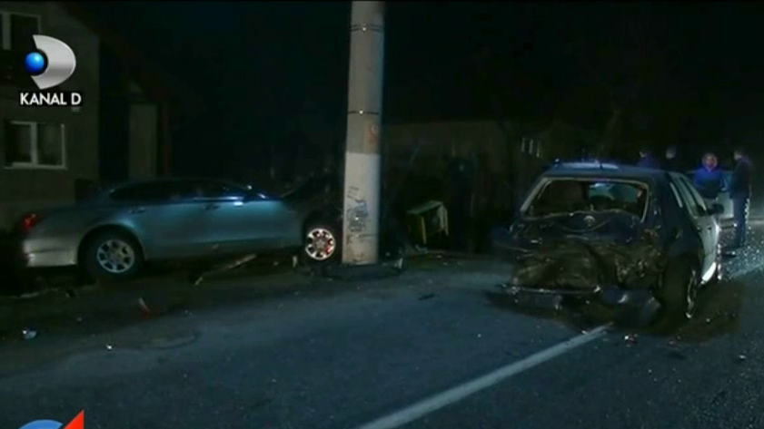 Intr-o curba a pierdut controlul volanului si a izbit in plin o masina parcata, dupa care a rupt teava de gaz si s-a oprit intr-un stalp de inalta tensiune.