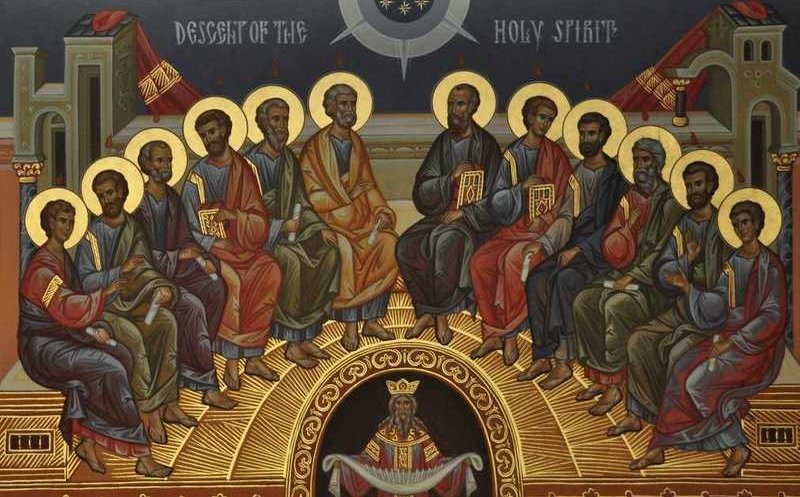 Se spune că în ziua în care s-au împlinit 50 de zile de la Învierea Domnului s-a auzit un tunet care a străbătut mulțimea adunată la Ierusalim din toată lumea. Duhul Sfânt s-a văzut în chip de limbi de foc, pogorând nu doar peste cei doisprezece apostoli, ci şi peste cei şaptezeci de ucenici.