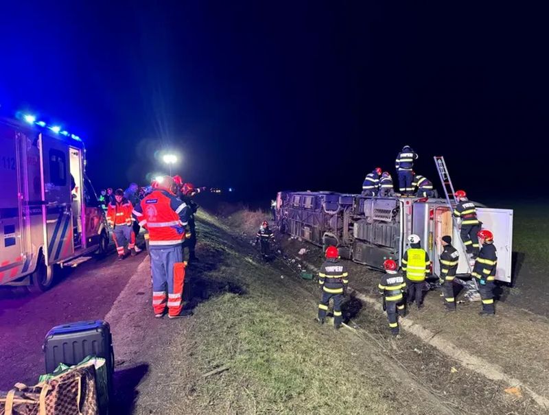 2 din 3 | A fost activat Planul Roșu de intervenție! Autocar cu 44 de persoane s-a răsturnat în Galați
