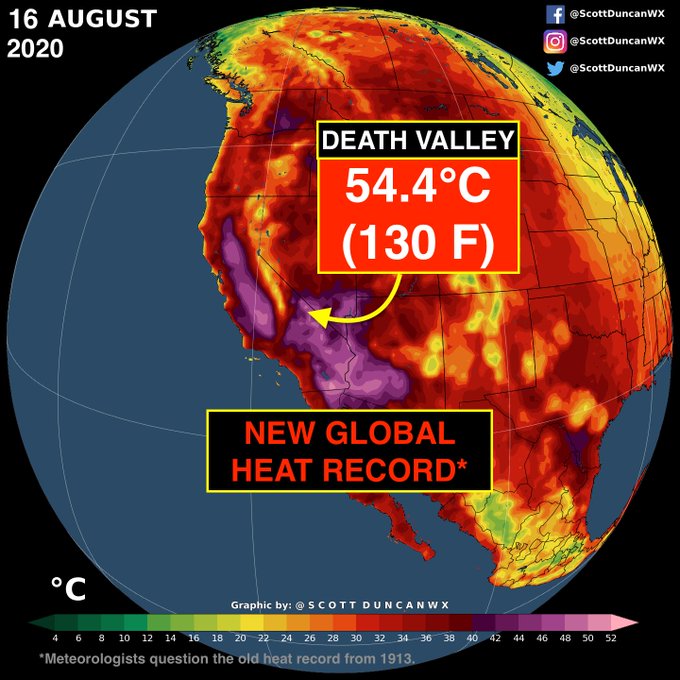 De atunci, o valoare de 54 grade Celsius (129,2 grade Fahrenheit) a fost înregistrată tot în Death Valley, în 2013.