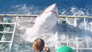 A fost la un pas de a fi inghitit de un rechin alb urias! Imagini terifiante cu momentul in care rechinul intra in cusca in care se afla scafandrul