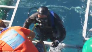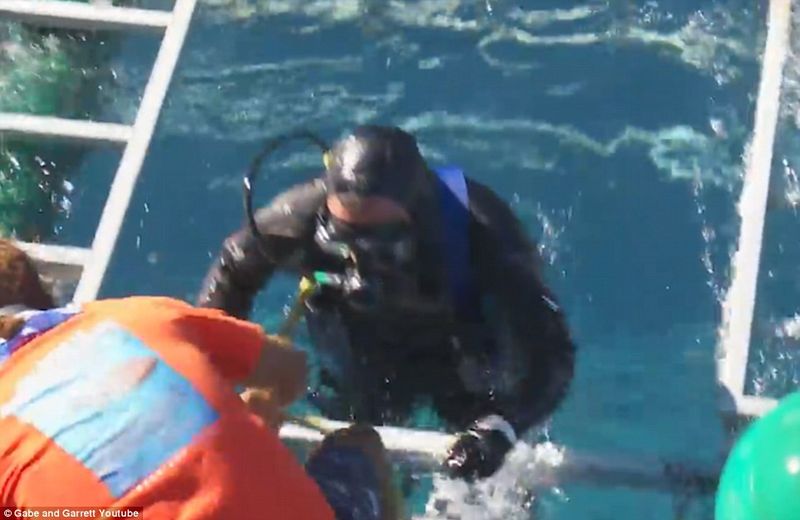Inca de la inceputul inregistrarii se vede ca rechinul se agita, in timp ce barbatul sta nemiscat intr-un colt al cutiei  de metal in care se afla. La un moment dat, rechinul intra in cusca, insa reuseste sa iasa, apoi dispare in larg, lasand oamenii de la bordul barcii panicati.