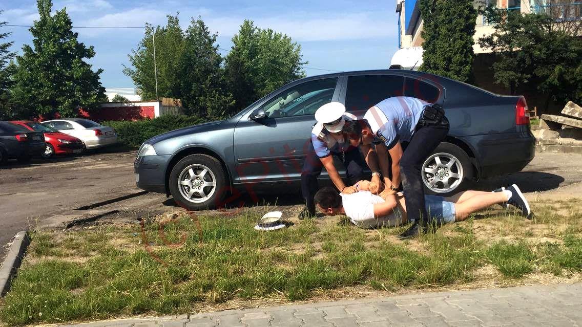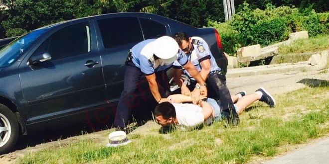 Doi agenti de politie din Pitesti au pus la pamant un taximetrist si l-au arestat, dupa ce acesta a facut un adevarat circ dupa ce a primit o amenda de 1.5000 de lei pentru ca stationa ilegal. Intreaga scena a fost inregistrata