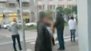 Acum, foc si para ca un cetatean cu spirit civic a dat-o jos din mijlocul de transport in comun cand parea ca se pregateste sa dea lovitura, femeia isi varsa nervii in plina strada.