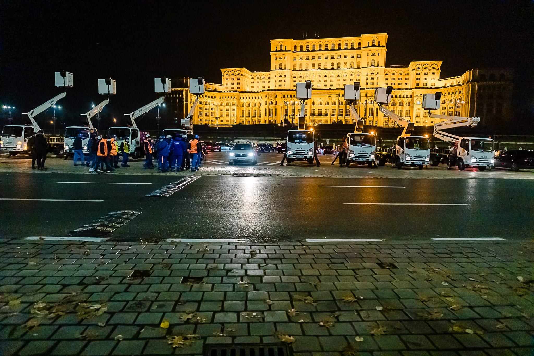 Primele decorațiuni pentru sărbătorile de iarnă au fost montate joi seara în Piața Constituției. Nicușor Dan: „Ne vom limita la ornamente pentru zona centrală a orașului”.