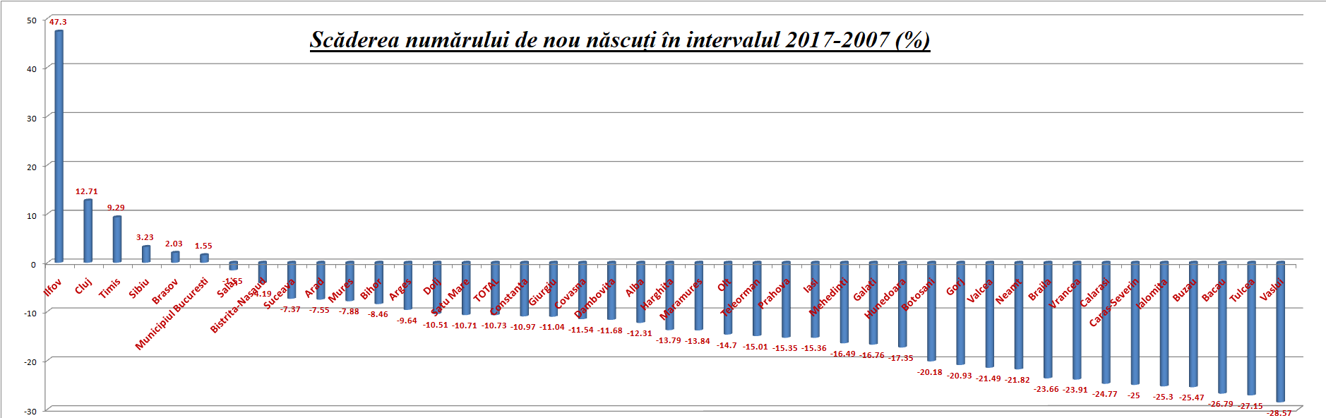 Ca sa ne facem o idee despre cat de mult a scazut natalitatea in Romania sa ne gandim ca in 1930 se nasteau 482.000 de copii, in 1946, in ciuda marilor dificultati economice de dupa cel de-al doilea Razboi Mondial, se nasteau 391.000 de copii. Pana in 1962, media a fost de 400.000, apoi a coborat la 300.000 pana in 1967 si 1968 cand a urcat la 520.000. In 2017 s-au nascut 200.000