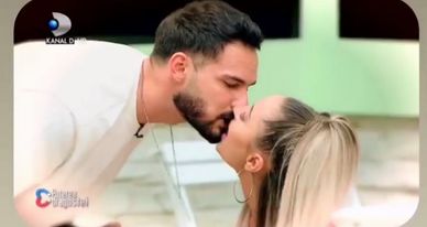 Cei doi au fost provocați să împartă o bucățică de ciocolată, dar nu oricum, ci pasional. Alex Stoica și Adriana s-au lăsat purtați de val și și-au bucurat fanii cu un sărut în premieră.