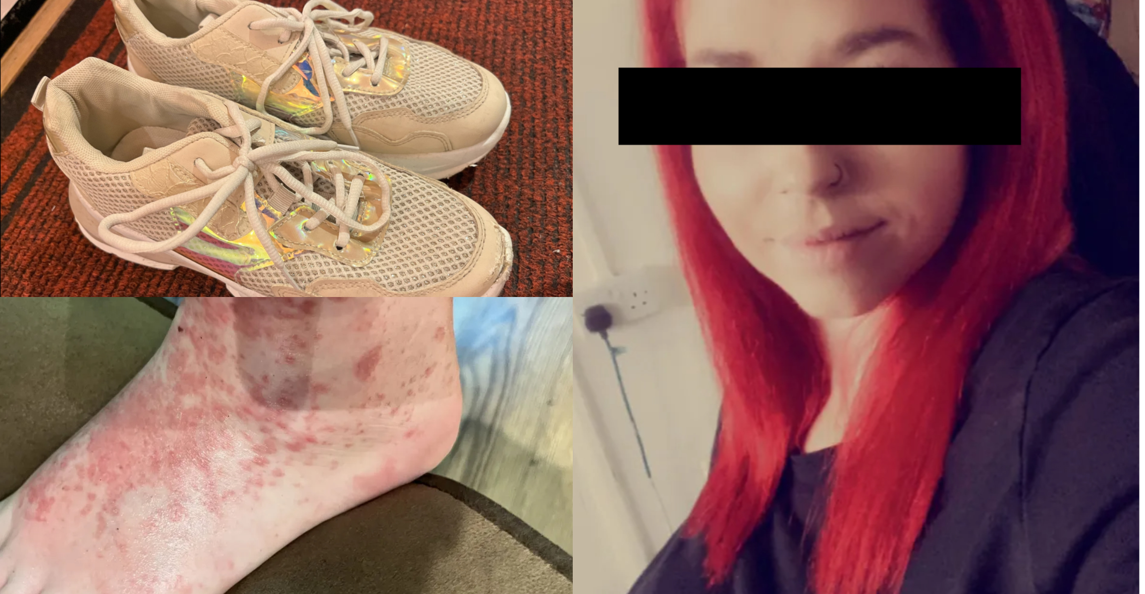 Becca Maddon a cumpărat o pereche de adidași second-hand, online. După prima purtare, femeia s-a ales cu erupție cutanată severă la picioare și glezne.