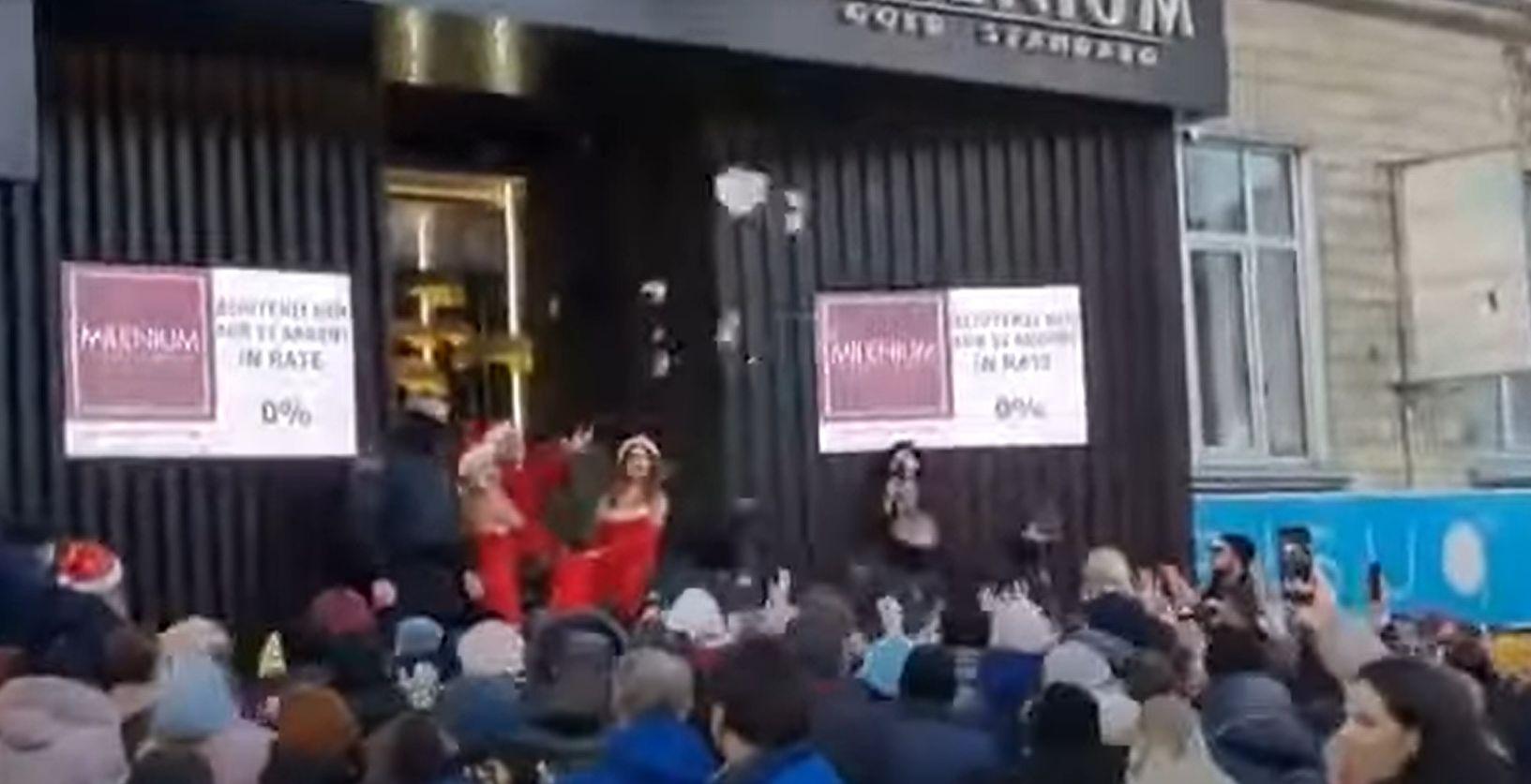 Aproximativ un kilogram de bijuterii din aur şi argint au fost aruncate către mulțimea adunată în faţa magazinului. Miza a fost una mare. Norocoşii s-au îngrămădit şi s-au duelat ca să se aleagă gratis cu o adevărată comoară.