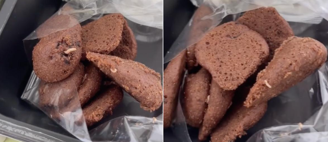 În imaginile postate pe rețelele sociale se observă cum din biscuiții ambalați ies mai mulți viermi. După spusele pacientului, biscuiții ar fi fost aduși de o firmă cu catering care distribuie mâncare unității medicale.