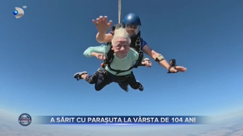 O femeie în vârstă de 104 ani a sărit cu parașuta și vrea să intre în Cartea Recordurilor. Bătrâna din Chicago a executat un salt cu parașuta în tandem cu un instructor de la peste 4.000 de metri altitudine și s-a simțit foarte bine. La aterizare, femeia de 104 ani a spus că vârsta este doar un număr. Acum, bătrâna speră să depășească recordul pentru cel mai bătrân parașutist din lume.
