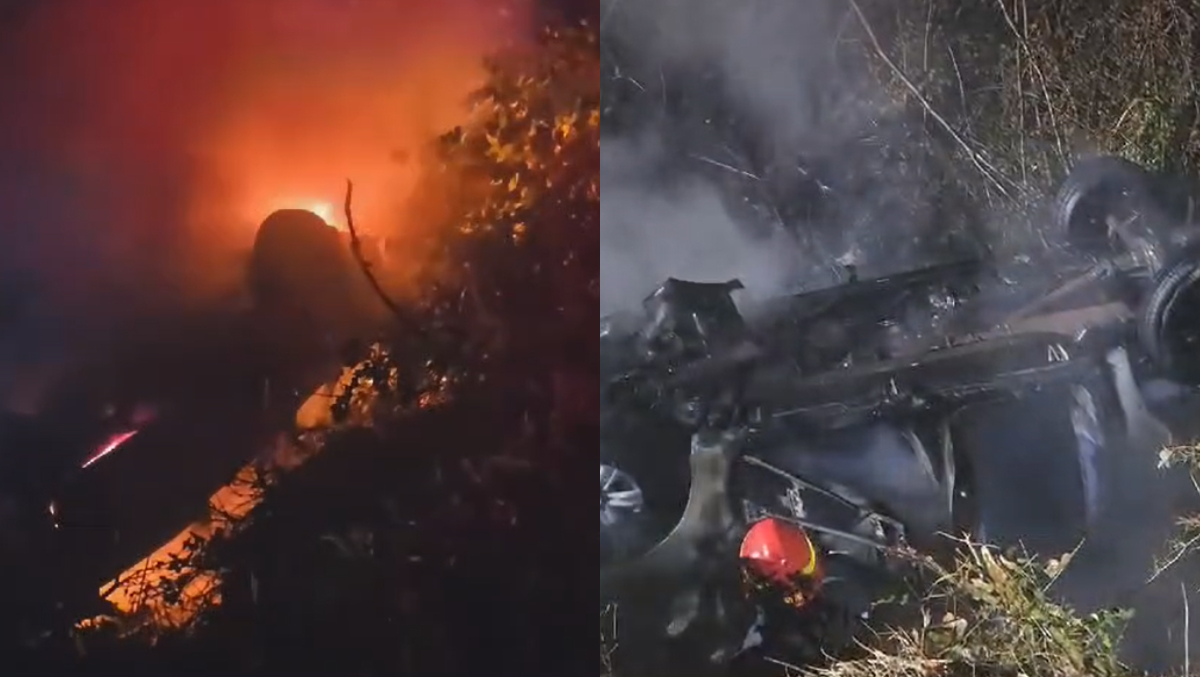 După ce a simțit mirosul de fum, mașina bărbatului a luat foc, din mers. Șoferul a fost nevoit să tragă pe dreapta, moment în care autoturismul din spate l-a izbit. În urma impactului puternic, mașina care a luat foc a fost aruncată într-o râpă, adâncă de cel puțin 10 metri.