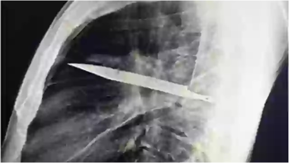 Radiografia a dezvăluit că bărbatul avea un cuțit de dimensiuni considerabile înfipt adânc în piept!