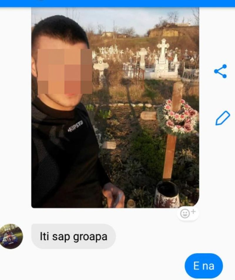 Totodata, ca sa-si spere fosta iubita, in varsta de 17 ani, buzoianul s-a fotografiat in cimitir si i-a transmis fetei mesajul ca ii sapa groapa.