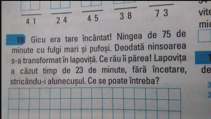 Si in manualul de matematica de clasa I exista o problema, semnalata de internauti, absolut halucinanta.