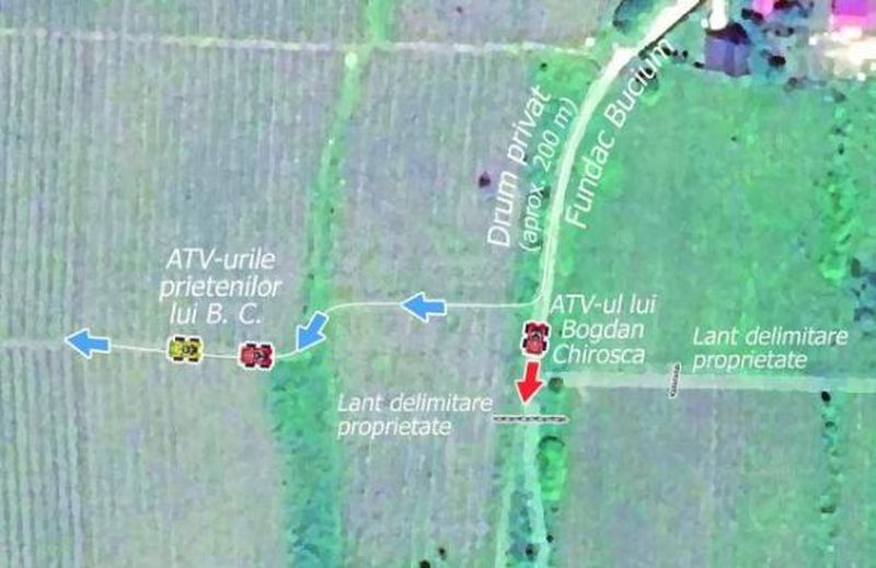 Anchetatorii bănuiesc că, aici, grupul de ATV-uri a mers pe această variantă aproximativ 150 de metri, apoi a virat la dreapta. Chiroşcă ar fi pierdut legătura cu acest grup şi s-a grăbit să îi ajungă din urmă.