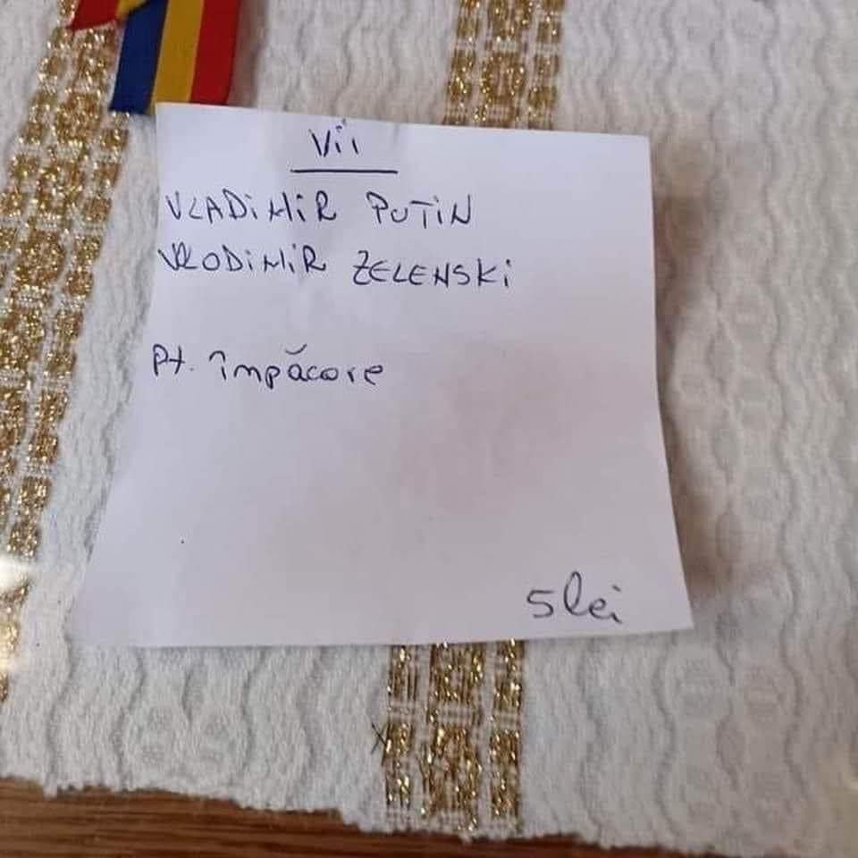 O imagine uimitoare a devenit virală zilele acestea. Un român a mers la biserică și a dat acatist de vii pentru Vladimir Putin și Volodimir Zelenski. Pe pomelnic, sub numele acestora, a menționat că se roagă pentru împăcarea dintre cei doi.