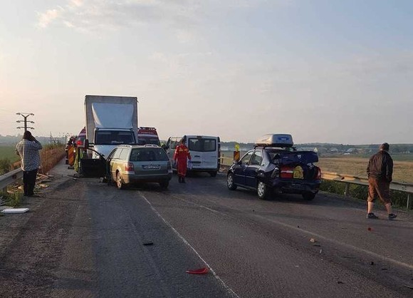 Un accident rutier s-a produs, vineri dimineaţă, 13 august, pe DN 13, în zona localităţii Feldioara, judeţul Braşov, în acesta fiind implicate patru autoturisme și şapte persoane, dintre care doi copii. Traficul în zona accidentului este complet blocat.