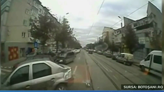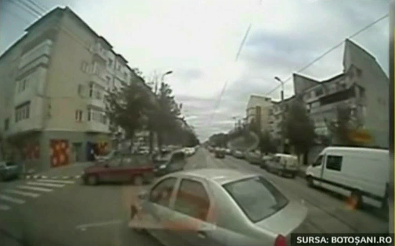 Totul s-a intramplat pe o strada intens circulata din Botosani. Pe imaginile suprinse de camera video se vede cum autospeciala SMURD intra in depasire. Din fata ii pare brusc, un alt autoturism cu semnalul pornit. ##VIDEO41003##