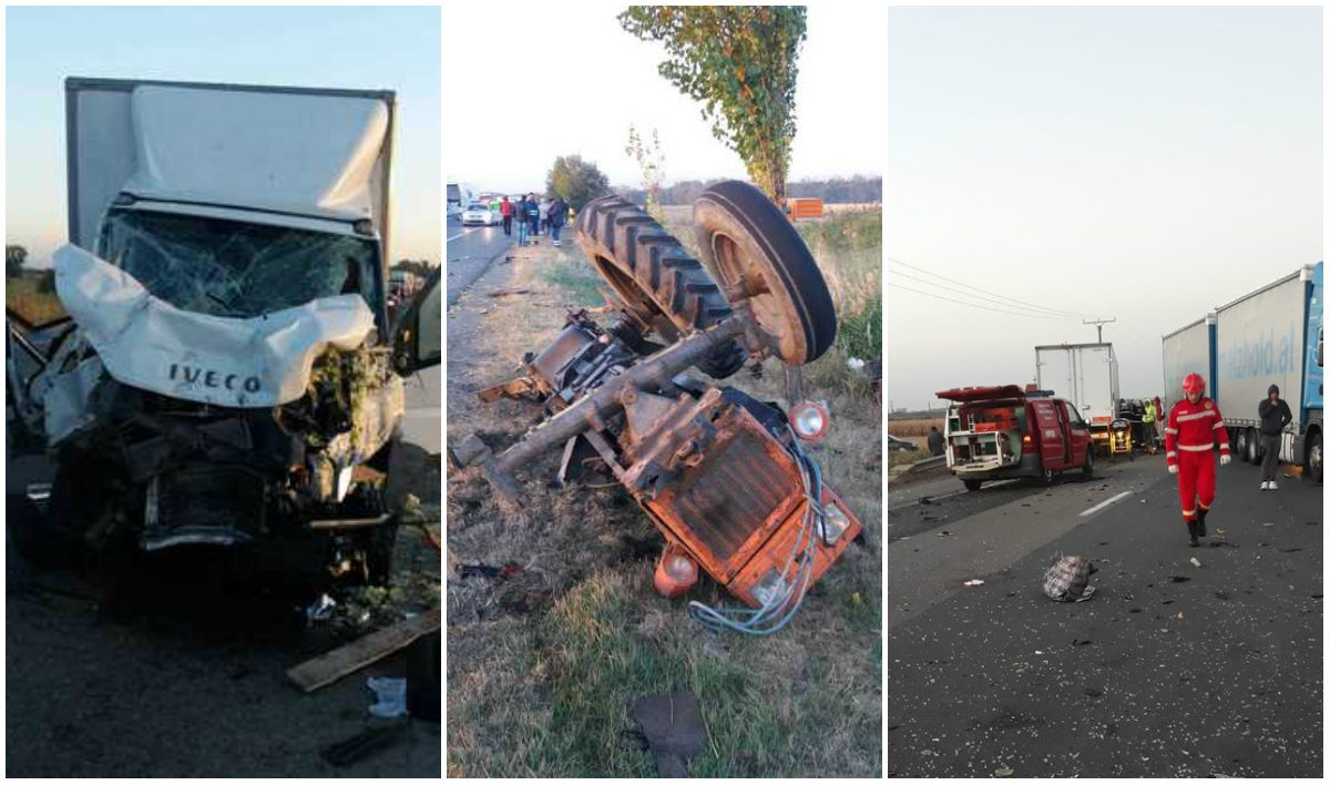 Potrivit purtătorului de cuvânt al Poliţiei Judeţene Vrancea, Paula Enache, marţi dimineaţă, pe DN 2, la intersecţia cu Rugineşti, un autotractor înmatriculat în Turcia, care circula pe direcţia Focşani-Adjud, s-a ciocnit cu un tractor care se deplasa în aceeaşi direcţie, după care a ajuns pe contrasens unde a lovit o autoutilitară.