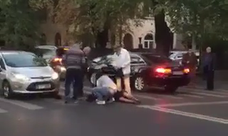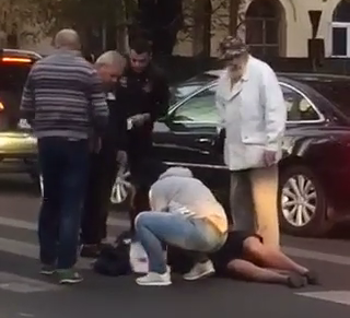 Imaginile surprinse de catre cei prezenti la fata locului arata ca femeia primeste ingrijiri medicale de la trecatorii aflati in zona si care au vazut tot ce s-a intamplat.