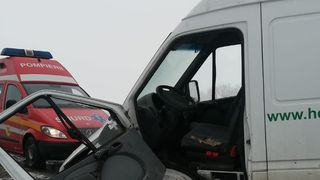 Un accident devastator de circulație s-a petrecut pe Drumul Național 1, la intrarea în Cristian. De vină este șoferul unui microbuz de marfă care nu s-a asigurat la intrarea dintr-un drum secundar în drumul principal.