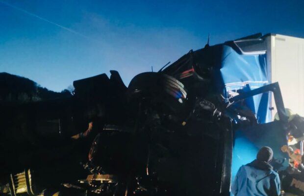 Două TIR-uri înmatriculate în Turcia, respectiv Polonia, s-au ciocnit extrem de violent pe DN6, între localitățile Armeniș și Sadova, în Caraș-Severin. Se pare că cei doi conducători auto nu ar fi adaptat viteza la condițiile de mers. Astfel, într-o curbă la dreapta, unul dintre TIR-uri a intrat în celălalt, care circula regulamentar.