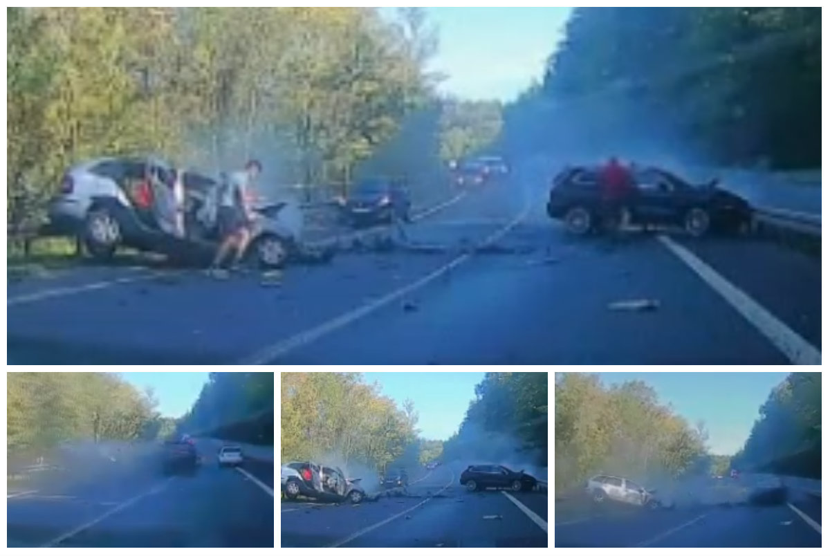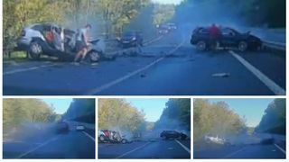 Un accident devastator a fost surprins de o camera aflata la bordul unei masini. Incidentul s-a petrecut pe o sosea din Slovacia, in regiunea Orava.