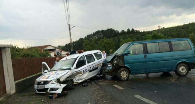 Accident devastator in Bihor. O masina de politie a fost izbita in plin de un microbuz. Trei persoane sunt ranite