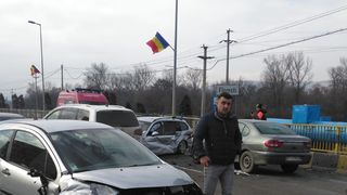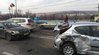 În carambol au fost implicate cinci autoturisme. Poliția a sosit la fața locului alături de un echipaj medical de la SMURD. Din primele informații nu există victime.