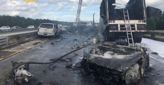 Patru persoane si-au pierdut viata, iar alte 13 au fost ranite, conform celor de la ABC News. Toate autovehiculele implicate in accident au fost complet distruse.