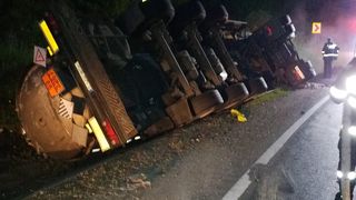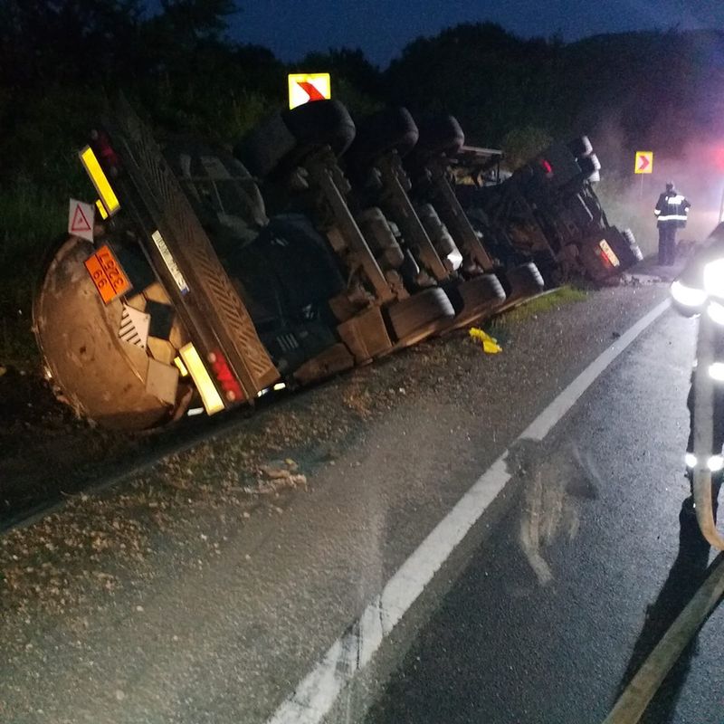 Un accident rutier grav a avut loc luni dimineață pe DN6, în zona localității Slatina Timiș: un tir cisternă încărcat cu bitum lichid s-a răsturnat în afara părții carosabile. Au avut loc scurgeri de lichid din cisternă, fără incendiu, iar o persoană a rămas încarcerată în vehicul.