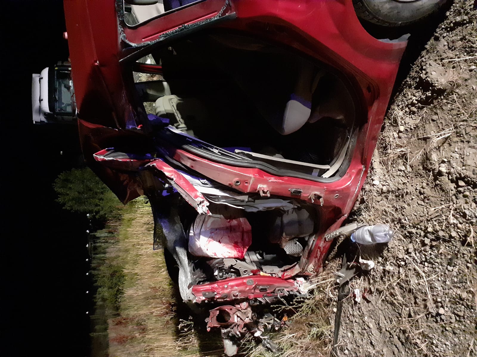 În urma impactului, conducătorul auto din autoturism şi un pasager al acestuia au decedat, ceilalţi doi pasageri din autoturism, fiind transportaţi la spital.