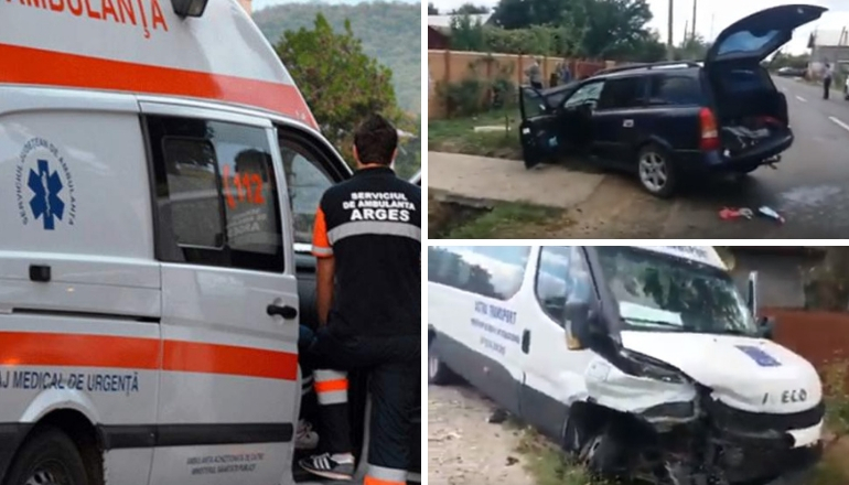 Accidentul a avut loc in localitatea Buzoiesti, din judetul Arges! O masina s-a izbit frontal intr-un microbuz plin cu pasageri. In urma impactului noua persoane au fost grav ranite.
