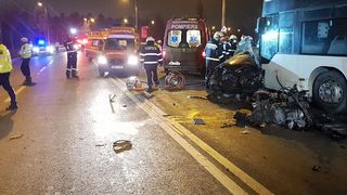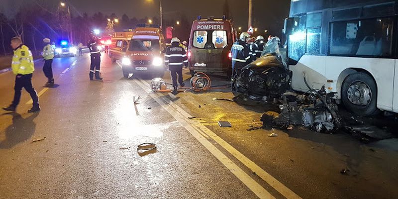 Accident grav pe șoseaua Petricani din Capitală. Un autobuz a intrat în coliziune cu un autoturism.