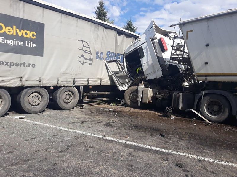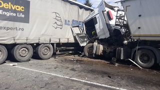 Accident grav pe DN3, drumul dintre Calarasi si Lehliu Gara. Doua autocamioane s-au ciocnit frontal.