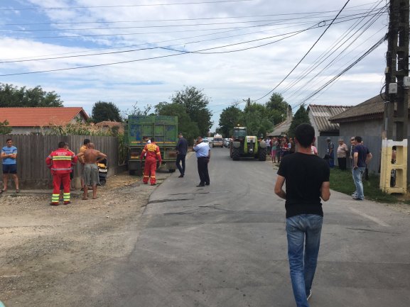 Pompierii de la Inspectoratul pentru Situaţii de Urgenţă Dobrogea au fost solicitaţi în localitatea Valu lui Traian unde o femeie si trei copii au fost raniti dupa ce o remorca agricola s-a desprins de un tractor.