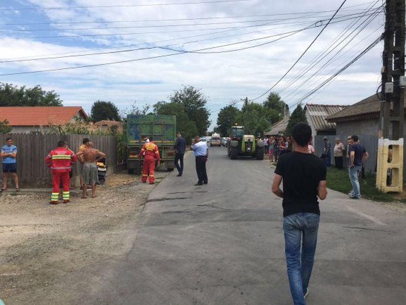 Femeia si cei trei copii ai sai se aflau pe strada in momentul in care remorca s-a desprins.
